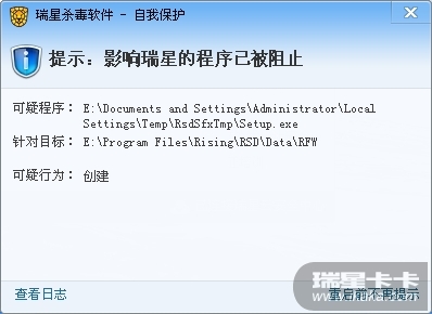 问题一,请提供瑞星日志db文件,问题二,请提供C:\Program Files\Rising\RSD\Data\RFW\RFW.ini文件。