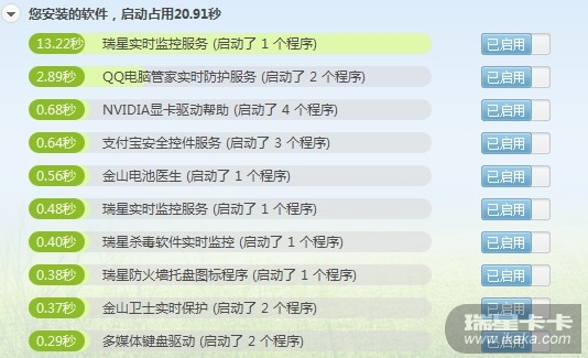 瑞星V16导致开机延迟很多