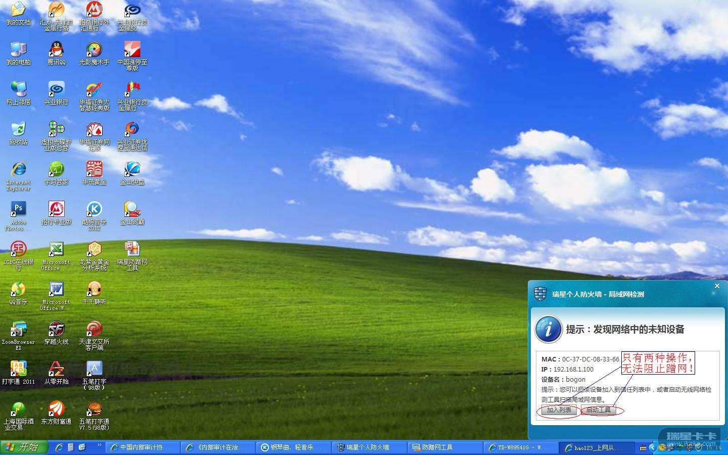 2012瑞星防火墙的防蹭网工具无法起到防蹭网的作用?