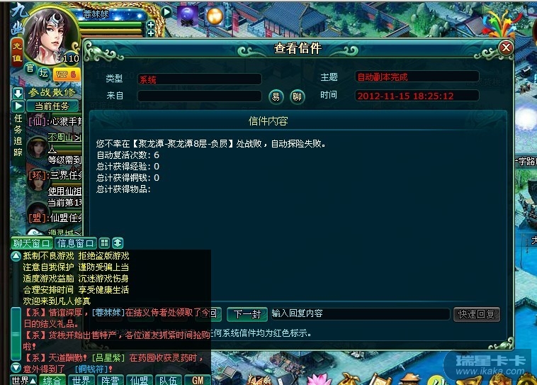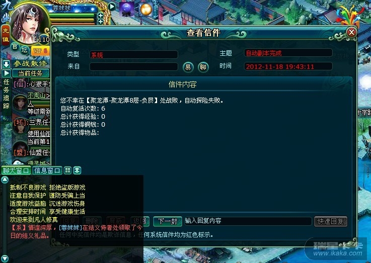 这是18号,我自动副本的邮件,经验和物品一样都没有?