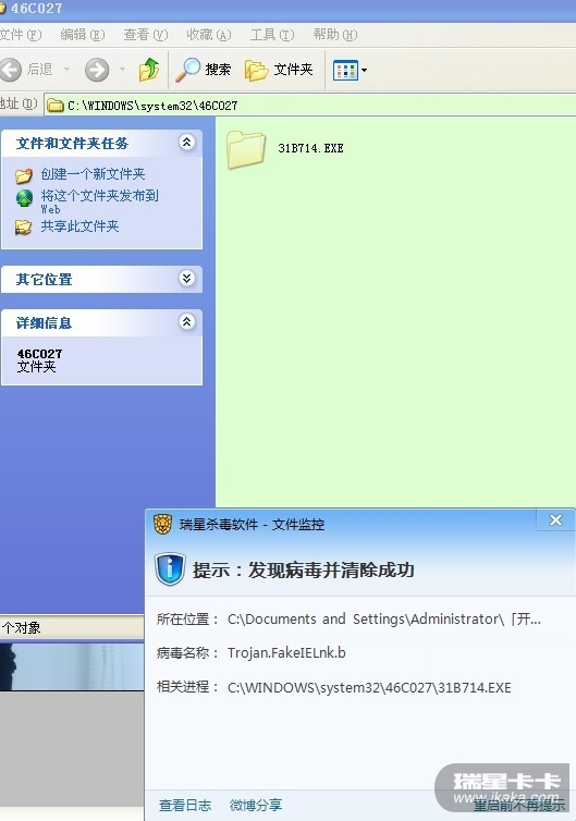 不杀也就算了,偶尔还又提示发现木马,我以为瑞星给力了,结果时不时弹两下,就再查了一下,进程\文件,统统都在..根本就没有操作.