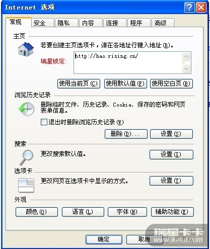 打开注册表,定位到这“我的电脑\HKEY_CURRENT_USER\Software\Policies\Microsoft\Internet Explorer\Control Panel”个位置,将右面的“HomePage”键值删除或修改值为0