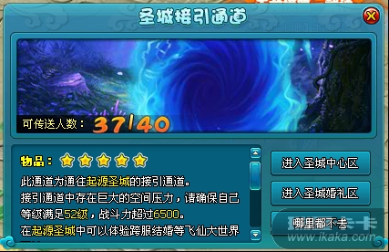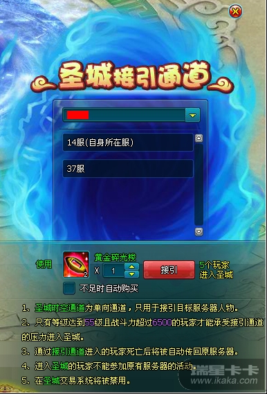进入圣城后玩家可点击圣城中央的接引阵法,对指定服务器打开接引通道。
