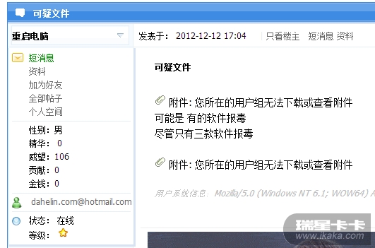 级别在“飘泊而立狮”以上的用户组,才能下载可疑文件交流区的样本