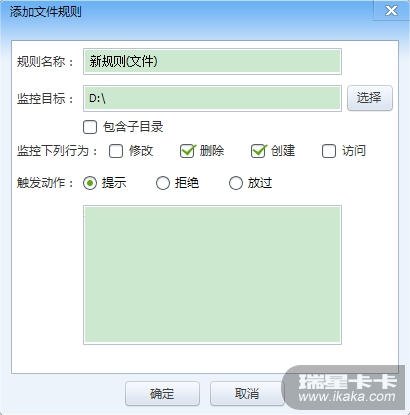 如果不勾选“包含子目录”,监控的就是根目录本身, 不包括里面的文件。