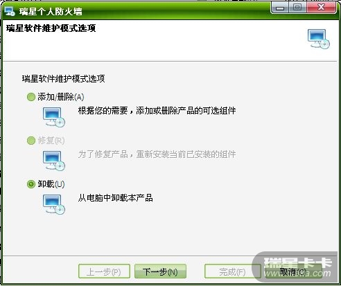 瑞星工程师12回复:通过控制面板添加或删除程序中启动的卸载界面,修复选项就是灰色的。