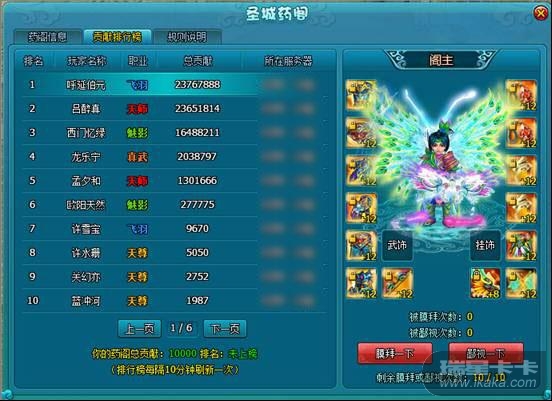 5. 阁主产生机制优化,排行榜中总贡献第一的玩家将成为阁主;