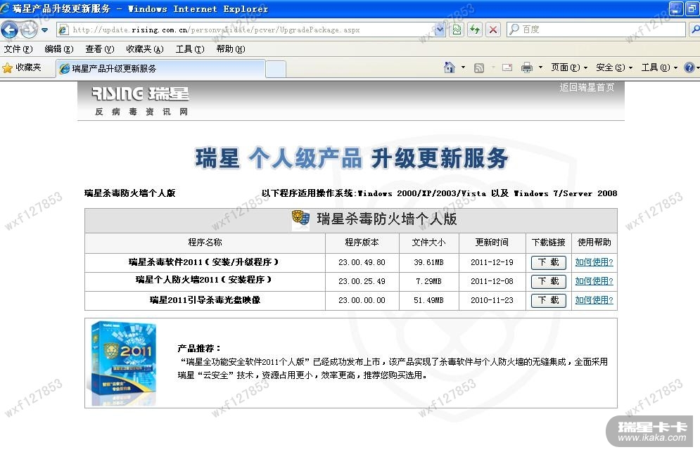 我使用瑞星也有八年多了,最早2004年买瑞星升级服务只有一年升级,到后来三年升级版本,再到现在的免费(免费瑞星也是有苦衷的)由于搬家等原因,购买的盒装产品现在都找不到了,幸亏我序列号和ID号我记下来了,每次要安装瑞星杀毒软件如果找不到瑞星杀毒软件安装盘就到官网上