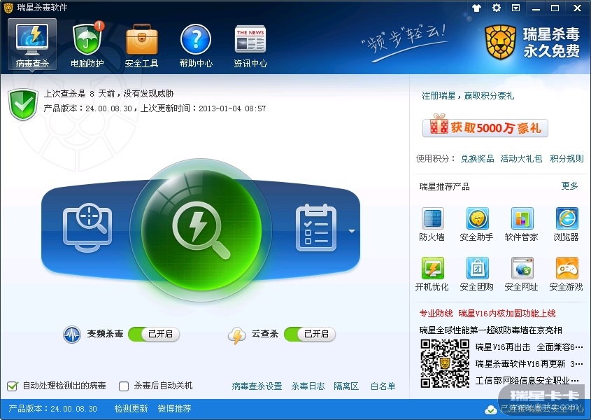 服务器操作系统为win server 2003,安装瑞星杀毒V16