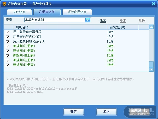 如果没勾选,注册表里的键值被修改时是不会弹框的。
