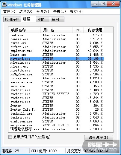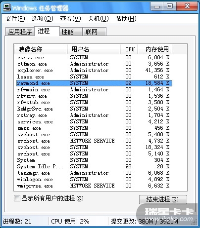 请提供ravmond.exe占用内存的截图看看,在什么操作下ravmond.exe会占用较高?
