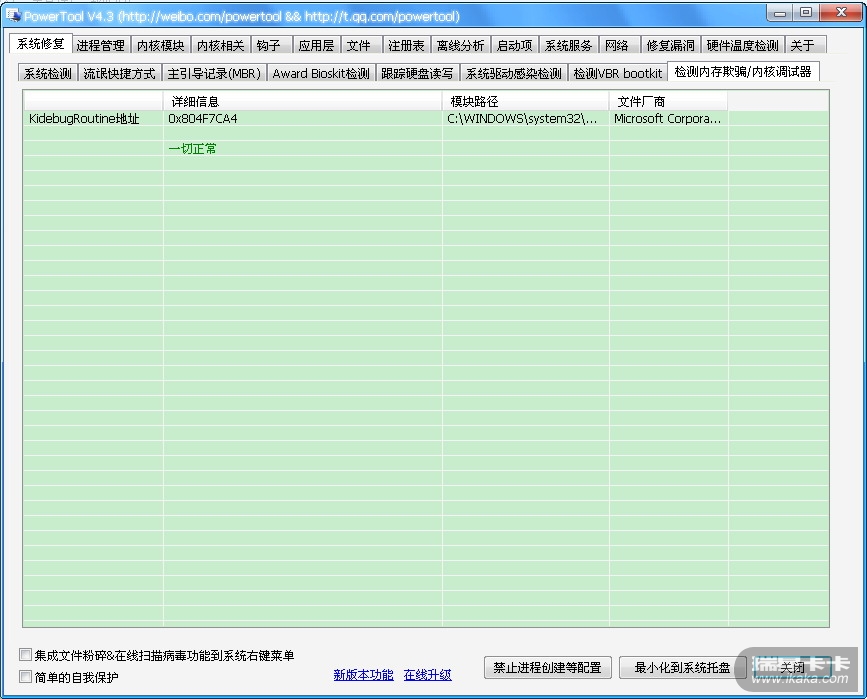 我的系统是XP SP3 当然是32位的,今早已经恢复系统到瑞星2011版了,但今天还是没有升级,还是昨天的23.00.68.74,不清楚最近瑞星的升级服务器怎么了,如果V16版没有注册表锁定功能,今后就只能放弃了,2011版就不能持续升级下去吗,为什么一定要跨版本升级到一个低级版本呢?几年前就同时对比过近7款杀毒软件,一直坚持使用并给我的用户极力推荐瑞星,就是看重瑞星的高级设置选项,而且2011版瑞星在32位系统下的表现堪称经典,运行速度和防御能力比起之前的2008和2009版有很大改善和提升,但如果新版本的注册表和系统文件防御拦截功能无效,就只能放弃了