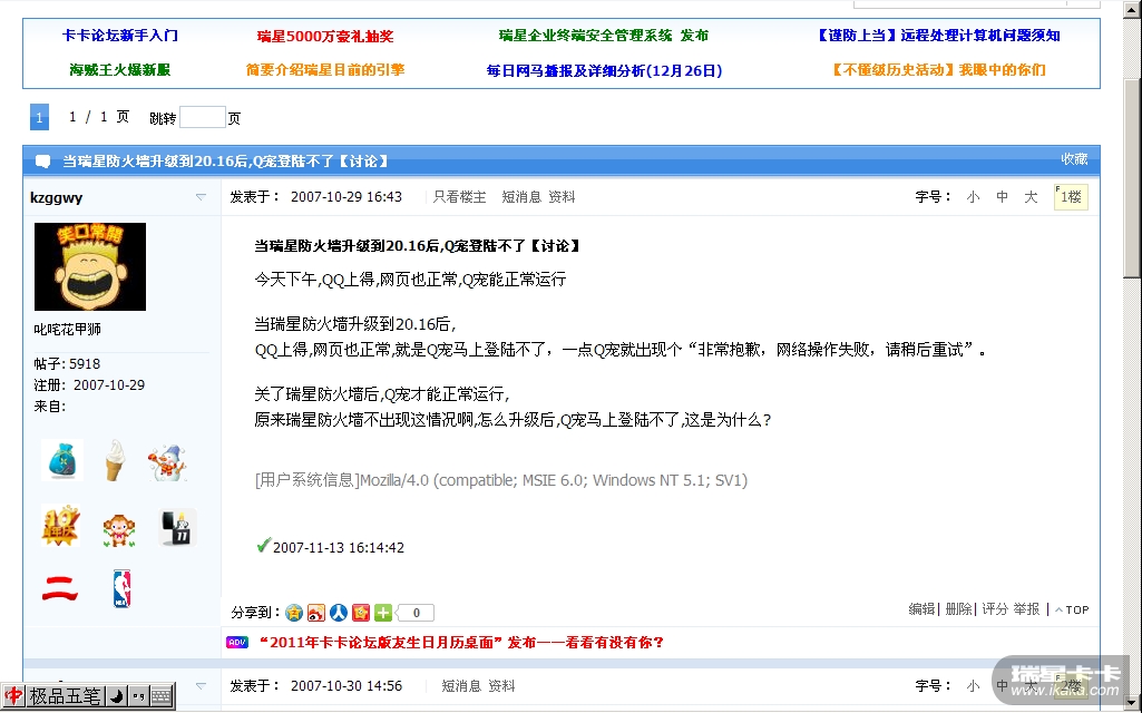 感谢瑞星,在论坛的这几年让我从 电脑小白 变成单位电脑问题的消防员,让我和同事关系处的更融洽。