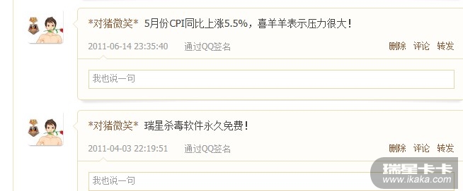 还有一件事就是瑞星杀毒软件免费那次,那次我真的很惊讶,还在QQ个性签名里发表了一下,替瑞星好好的宣传了一下,嘿嘿,是不是聘我当个宣传大使啊?(下面有QQ空间截图)