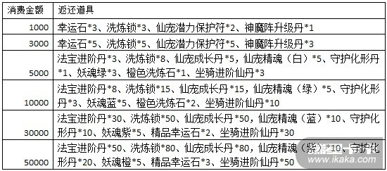 玩家若在指定系统消费满50000元宝,即可获得以上消费额度的所有奖励。