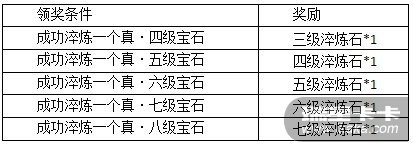 活动规则:活动期间,玩家每淬炼成功一个指定级别的真·宝石,即可获得系统赠送的好礼一份。
