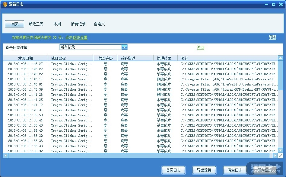 今天开始一开网页就提示有病毒需要删除,新浪等大网站都一样,包括现在这个瑞星论坛也会提示有病毒。文件位置是开网页的临时文件夹。帮忙看看是