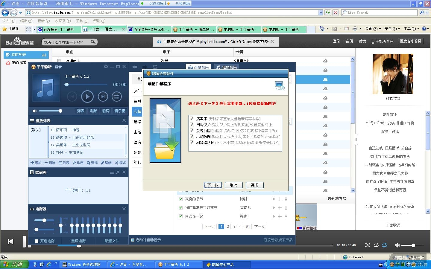 这是瑞星软件的升级提示框,如果您不想设置瑞星安全网址,请将网购保护、浏览器防护的勾选取消,再点击下一步。