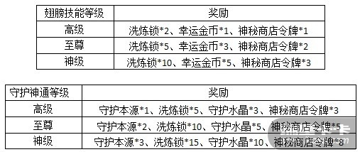 活动期间,学习指定级别的翅膀技能、守护神通将能获得额外系统好礼哦。