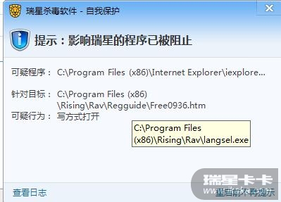 请lz提供瑞星v16软件版本,操作系统类型,在弹窗界面点击查看日志,在日志页面有个白色的倒三角,点击备份日志,将日志db文件导出压缩跟帖上传。另做什么操作的时候弹窗的?