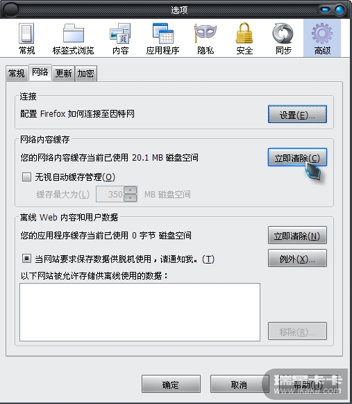这里发现一个BUG,用户发现无法拦截广告或视频广告出现黑屏时,应该可以安上图红框内的清除缓存解决,但是其实防火墙缓存清理是无效的,用户必须手动对浏览器作如下设置IE