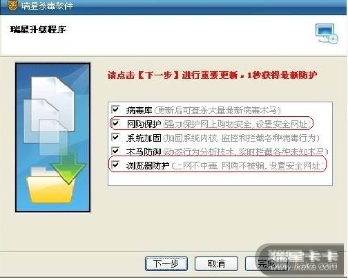 那么系统加固和木马防御又升级是什么呢,另外病毒库不是每天自动升级么,为什么还有这个提示呢。