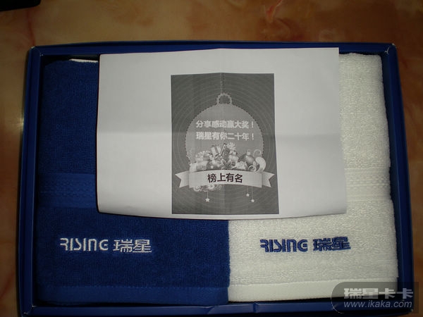 瑞星二十年活动入围奖奖品收到了。毛巾很实用。