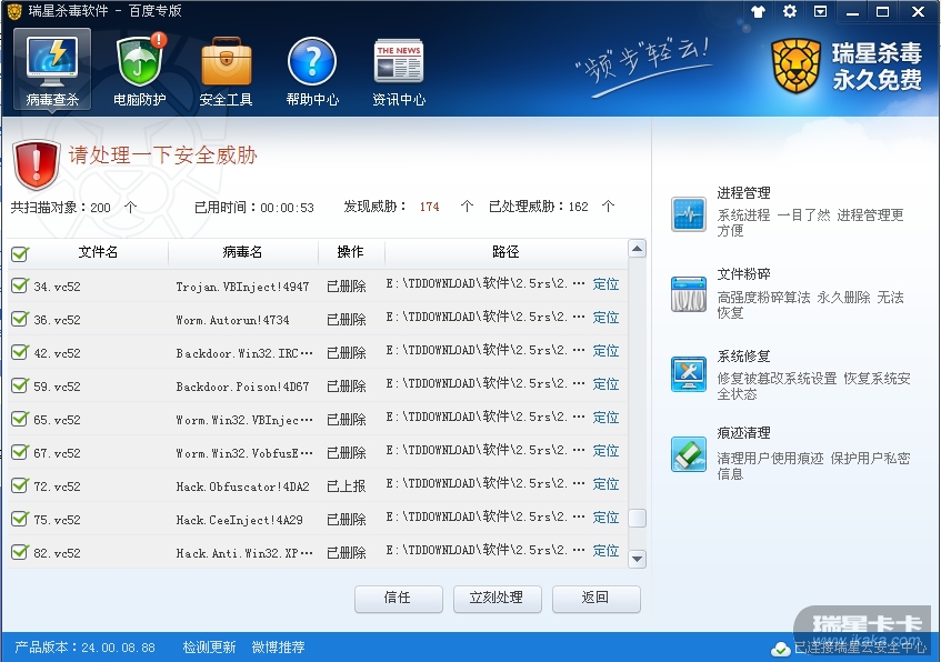 | 4 | 200 | 173(实际检测174) | 26 | 86.5% | 24.00.08.88 | 检测出未处理样本打包上报