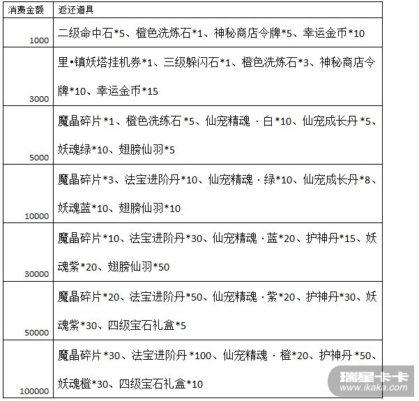 玩家若在指定系统消费满100000元宝,即可获得以上消费额度的所有奖励。