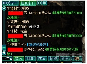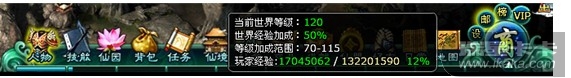 2)处于世界等级经验加成BUFF下,在游戏中获取的经验值(如副本打怪,吃经验药,任务,运镖等)加成50%(在常规经验加成的基础上再加成,例如:服用寂灭丹后的VIP7玩家,打怪获取经验为,3*1.8=5.4倍经验加成,则世界等级加成BUFF下最后加成50%,即3*1.8*1.5=8.1倍经验加成)。