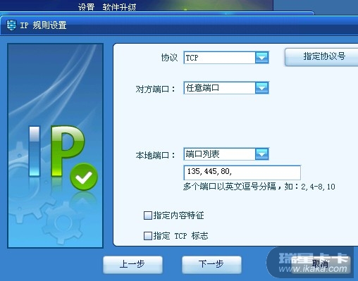 先在网络防护那里设置ip规则优先,之后在你设置的这条基础上在设置一条允许的ip地址放行规则,在设置通信的本地电脑地址那里,选择指定地址,输入允许访问80端口的ip地址,后面的操作都一样。