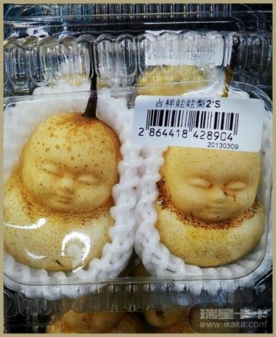 超市售卖“娃娃梨” 外形酷似小孩,网友称恐怖。(来源:王子殿下的牙牙)“大师兄!我听说外面超市有卖人参果的 ,你去弄两个来给俺们尝试鲜呗”不过!!!农业科学家雷晓毛表示,这种梨是幼果时用模型限制生长出来的,不要盲目跟风。