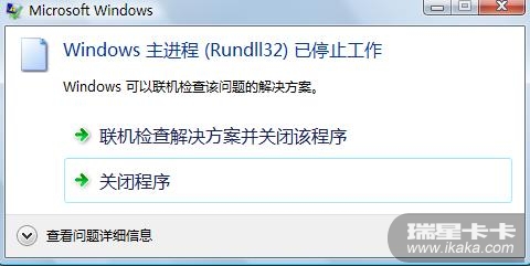 我的系统是VISTA,重装瑞星加密盘后,再打开加密文件夹时,系统出现提示对话框:WINDOWS主进程(RUNDLL32)已停止工作,然后右下角任务栏出现:已经关闭WINDOWS主进程(RUNDLL32)为协助保护计算机,数据执行了保护已关闭了WINDOWS主进程(RUNDLL32),单击了解详细信息。请问这是怎么回事啊,每次打开都是这样的,加密文件根本无法使用。