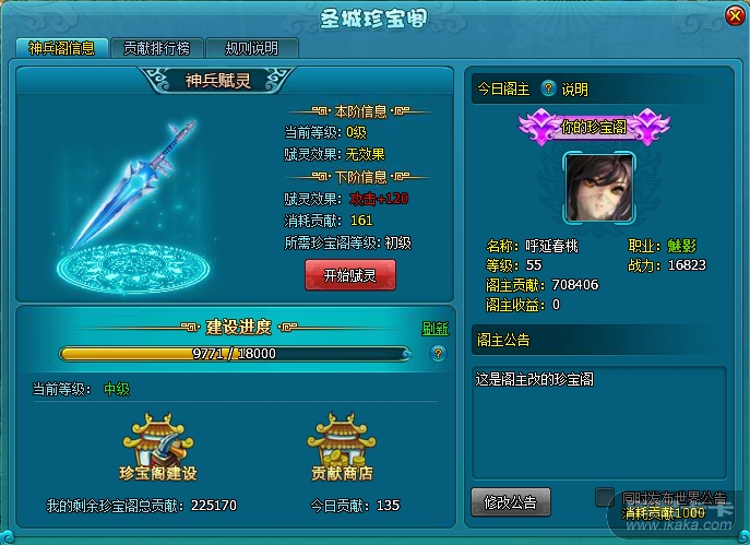 1、 神兵赋灵共100级,通过消耗贡献度可以提升赋灵等级