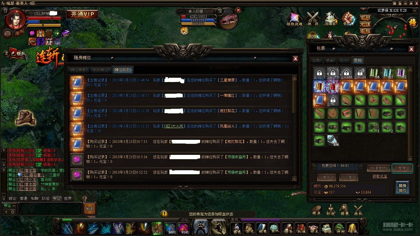 5区 轩辕华灿  交易时间 2013年3月23号11:46:51、 2013年3月23号11:46:54、 2013年3月23号11:11:29  一共3次交易  交易买家 我这里就不透露了吧?