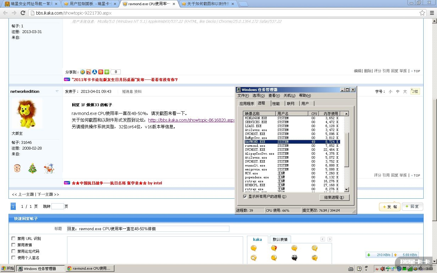 ravmond.exe CPU使用率一直在48-50%,请发截图来看一下。