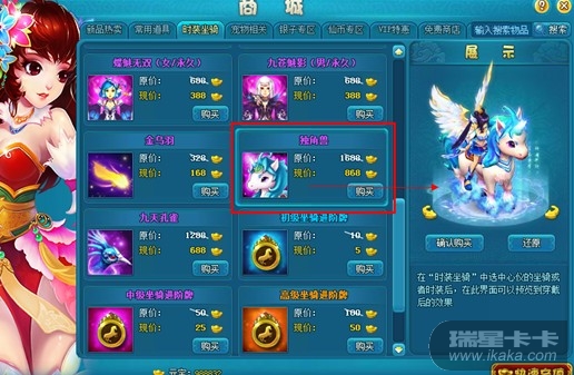 -『时装坐骑』商店出售的【孔雀】坐骑将替换为【独角兽】坐骑。如此可爱的坐骑,以往只有活动时候出售哦!只售