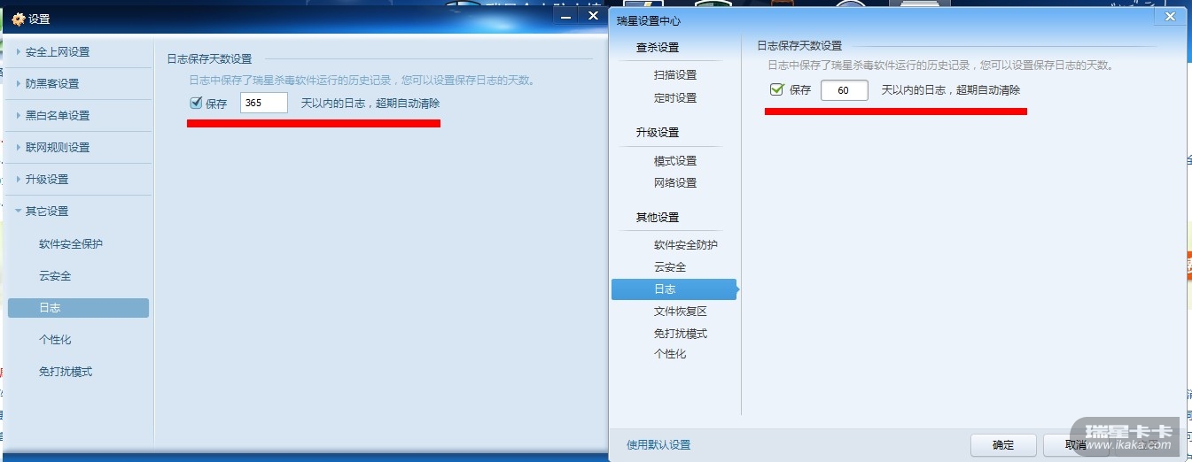 说明:日志保存天数设置里天数分别是365天、60天,希望在以后的版本中统一天数
