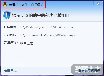 结束防火墙但是提示‘瑞星杀毒软件-自我保护’有点不妥吧~