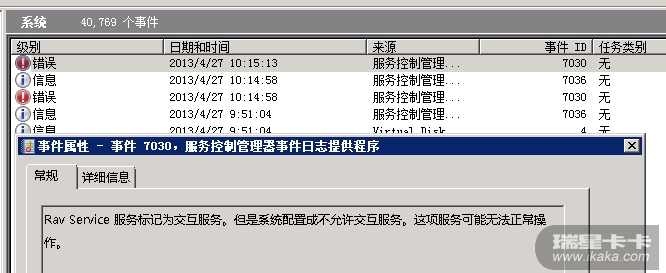 Rav Service 服务标记为交互服务。但是系统配置成不允许交互服务。这项服务可能无法正常操作。