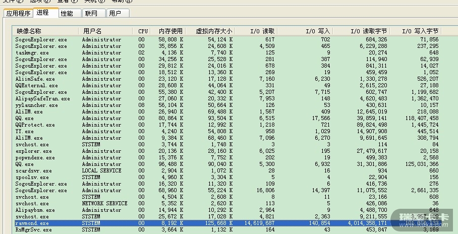 我和他问题一样,现在也装回了金山毒霸,I/O读取和I/O其他都比瑞星小很多。