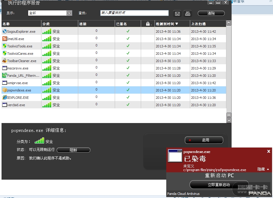 Panda Cloud Antivirus 报popwndexe.exe染毒问题,楼主做什么操作出现这个提示的?