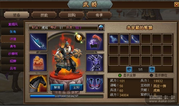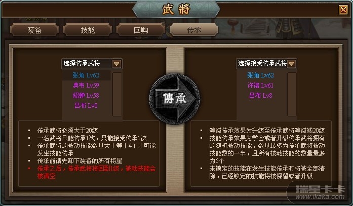 刚刚招了吕布,武将传承想把许褚传承给吕布,但选择不了许褚,求客服解决!谢谢!