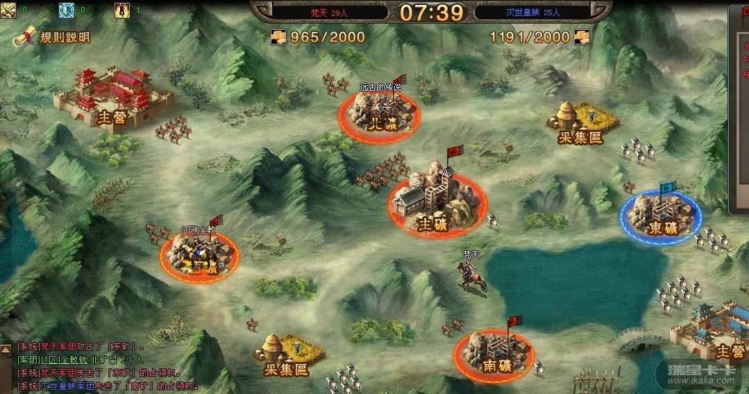 G M 您好!我是三国演义 1区 的玩家,5.17的团战 灭世皇族VS梵天 为什么梵天军团占了3个小矿+主矿 却没有灭世皇族的资源多, 而且主矿的资源就没有增加过 !求合理解释!