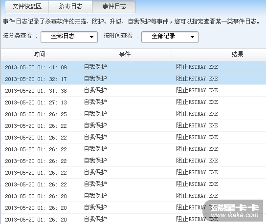 rstray.exe 应该是实时监控的不吧 大写没关系么。针对目标素实时监控的日志文件 那应该素记录吧那为什么会自动阻止呢。。