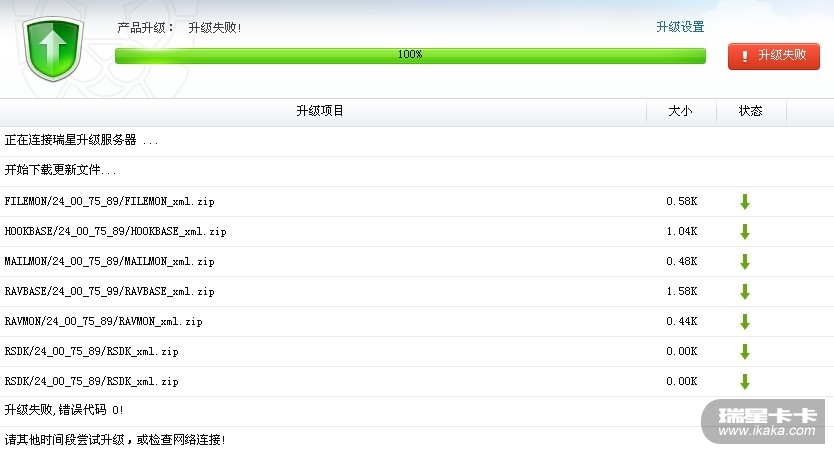 把这个地址:http://rsdownauto.rising.com.cn/rs2012/pcver/RSDK/24_00_75_89/RSDK_xml.zip粘贴到ie地址栏里看能直接下载么?