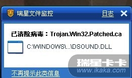 瑞星工程师12回复:您是否为此帖问题:http://bbs.ikaka.com/showtopic-9242134.aspx请暂时关闭文件监控,将dsound.dll 从隔离区恢复,压缩跟帖上传至论坛。