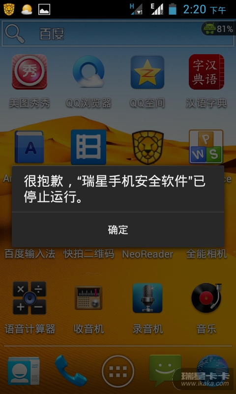 问题:更换绿色后界面画屏,更换蓝色后瑞星崩溃!