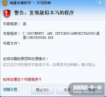 结果:瑞星行为引擎拦截报警