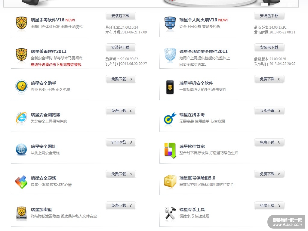 第二,在主页一栏“个人产品”中也所有瑞星系列都添加二维码下载标示提示;